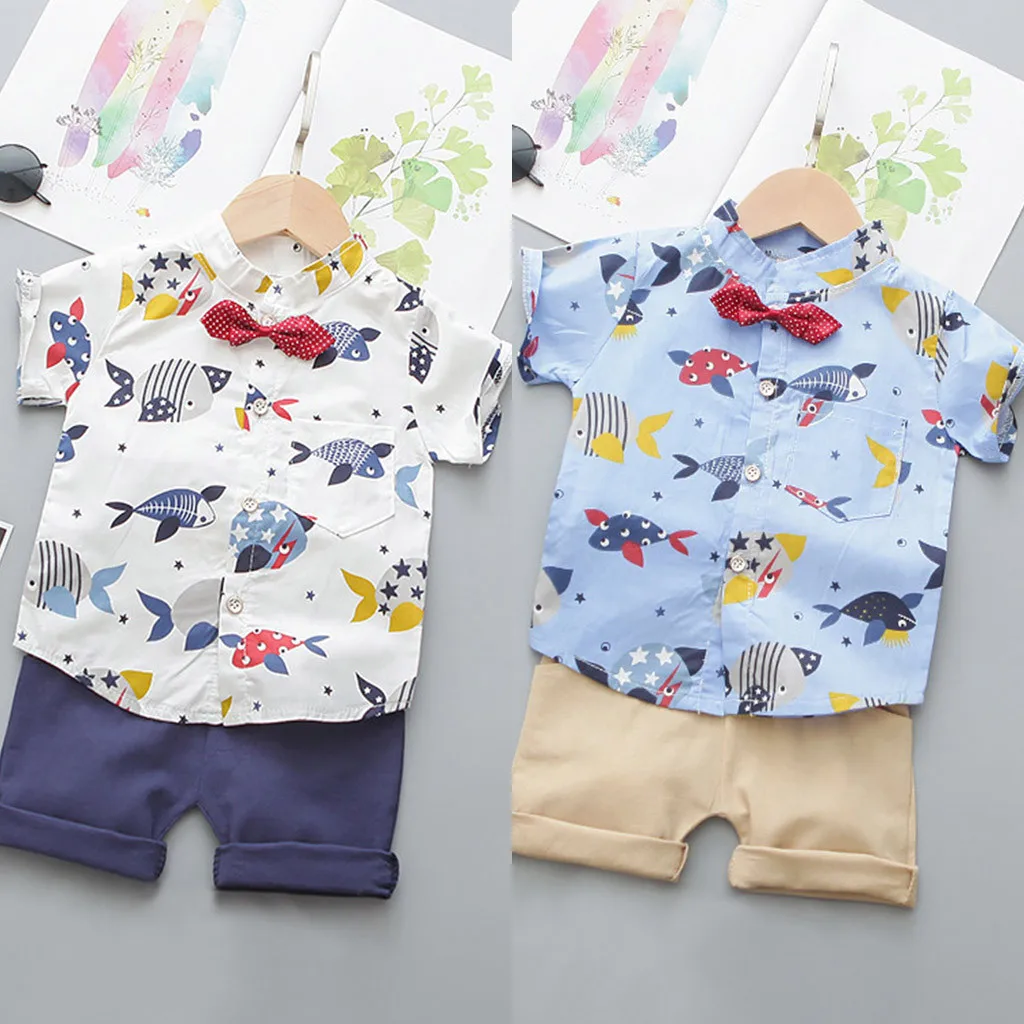 Balita Bayi Laki laki Pakaian Musim Panas Gadis Ikan Laut Gambar Atasan + Celana Pendek Set Pakaian Anak Kostum Ropa BEBE Verano # Y2|Set pakaian| - AliExpress