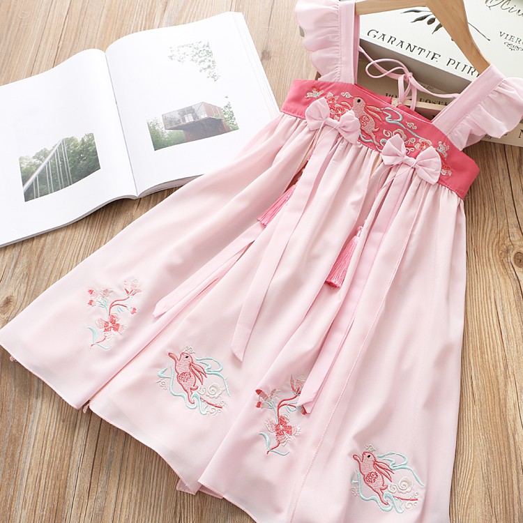 Dress tanpa Lengan Gambar Bunga dan Kelinci Warna Pink Gaya China untuk Anak Perempuan | Shopee Indonesia