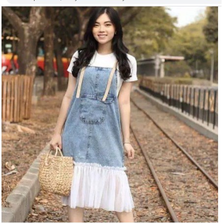 Baju kodok rok bahan jeans / Overal jeans wanita terbaru / Outfit wanita / Baju kodok model rok / Dress Jeans 318 341 Natasa | Lazada Indonesia
