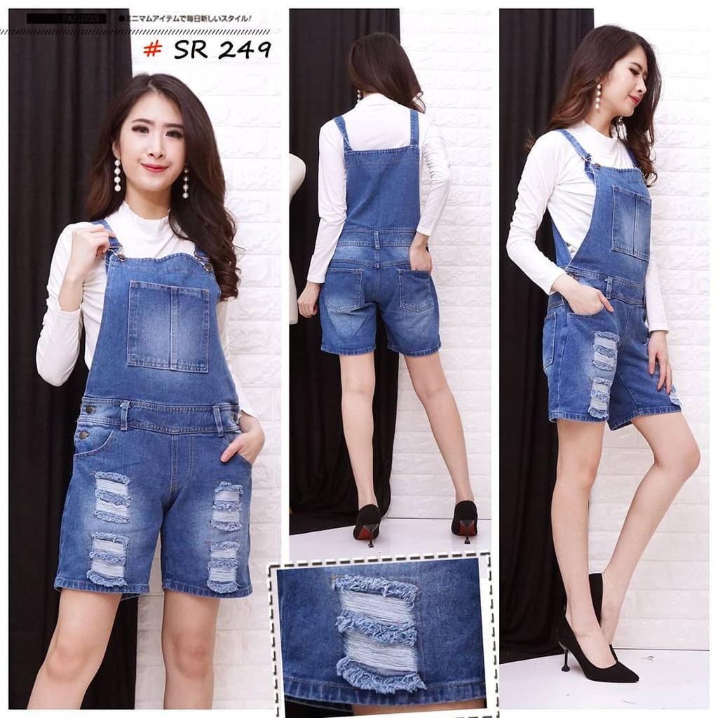 Baju Kodok Celana Pendek Sobek Overall Jeans Premium Ripped Size S M L | Shopee Indonesia