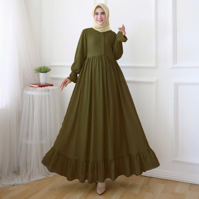 Baju Muslim Cewek Dress Muslimah Jepang Baju Gamis Wanita Terba GH369 / Hijau Army / Polos / / Ceru | Shopee Indonesia