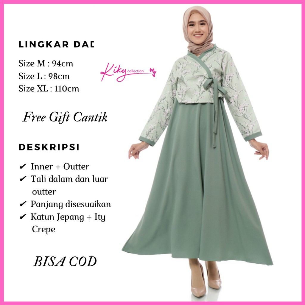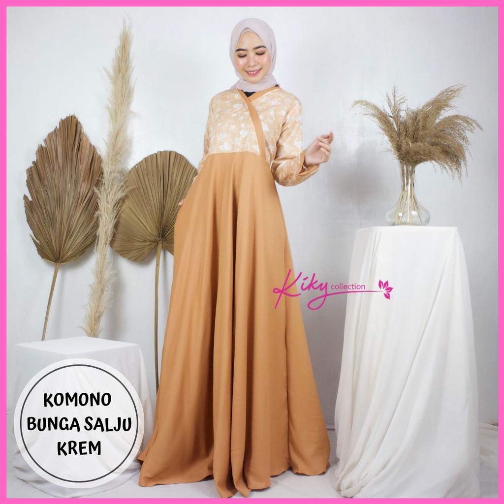 Gamis Baju Muslim Wanita Katun Jepang Motif Model Terbaru Kimono Busui Bunga Salju KIKY COLLECTION | Shopee Indonesia