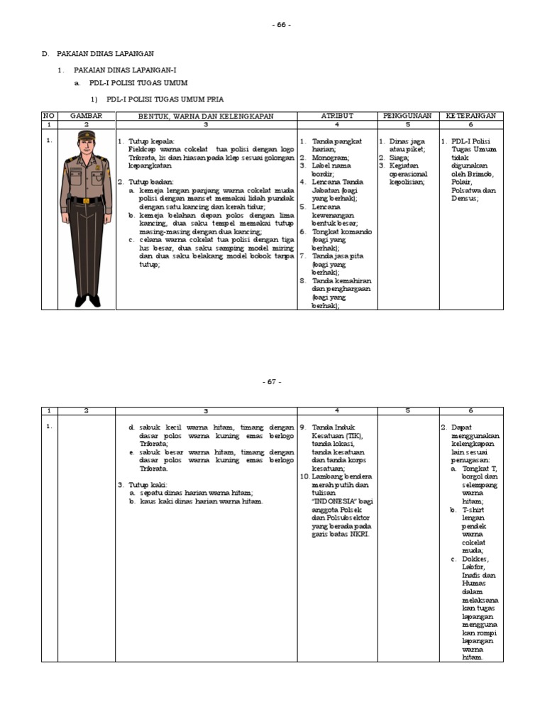 66 - D. PAKAIAN DINAS LAPANGAN 1. PAKAIAN DINAS LAPANGAN-I a. PDL-I POLISI TUGAS UMUM 1) PDL-I POLISI TUGAS UMUM PRIA NO GAMBA