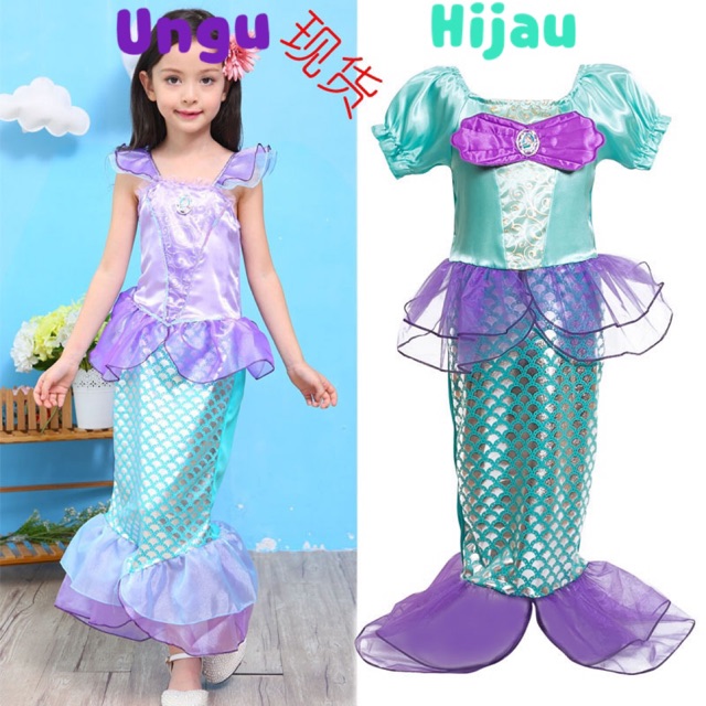 Baju gaun dress anak perempuan kostum princess ariel mermaid import | Shopee Indonesia