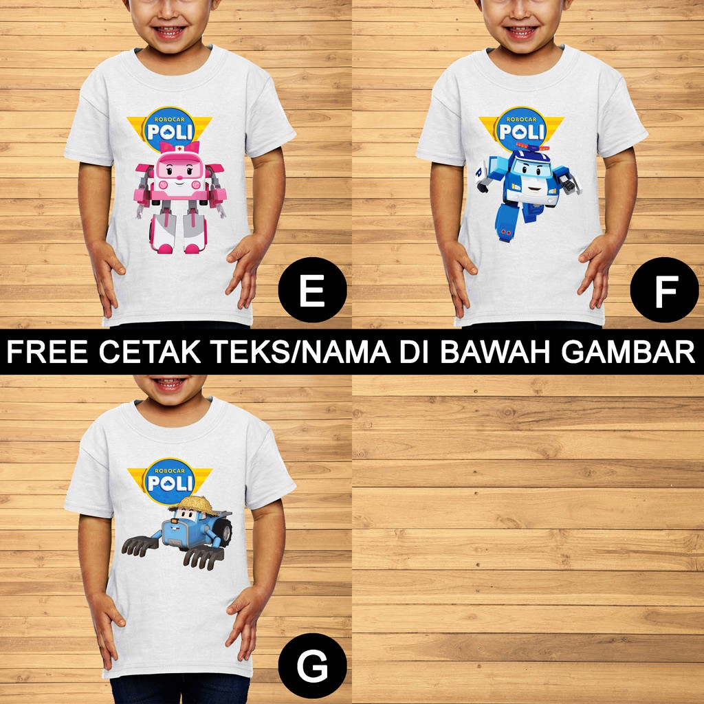Robocar Poli Baju Kaos Anak dan Balita Kartun Karakter Custom Teks/Nama | Shopee Indonesia