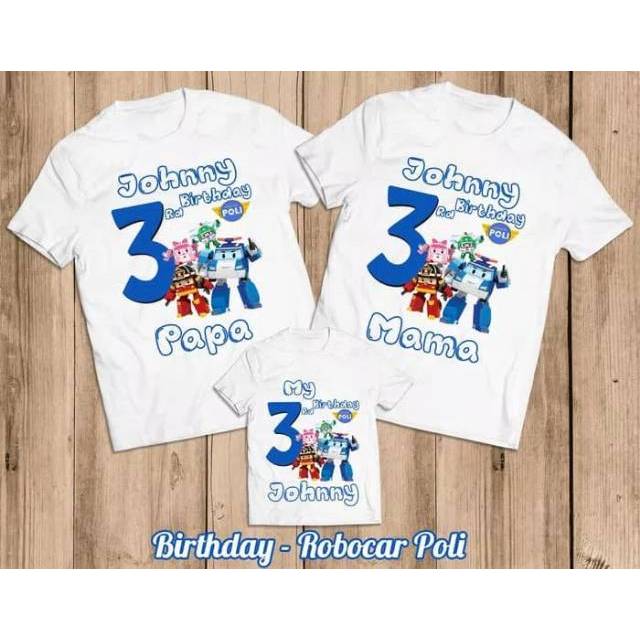 Kaos Ulang Tahun | Baju Couple Keluarga Motif Robocar Poli | Shopee Indonesia