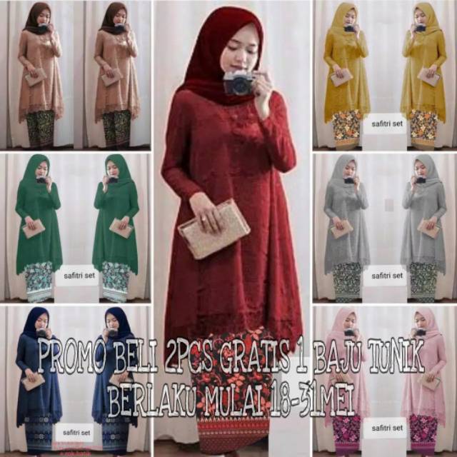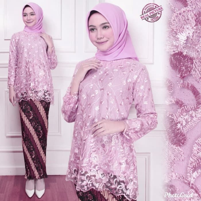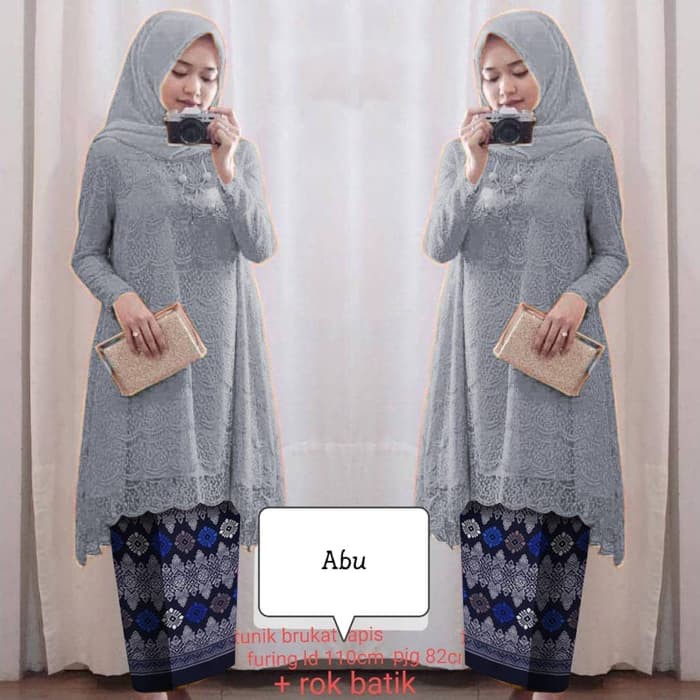 setelan kebaya wisuda tunik brukat fitri abu batik baju pesta st vt | Shopee Indonesia