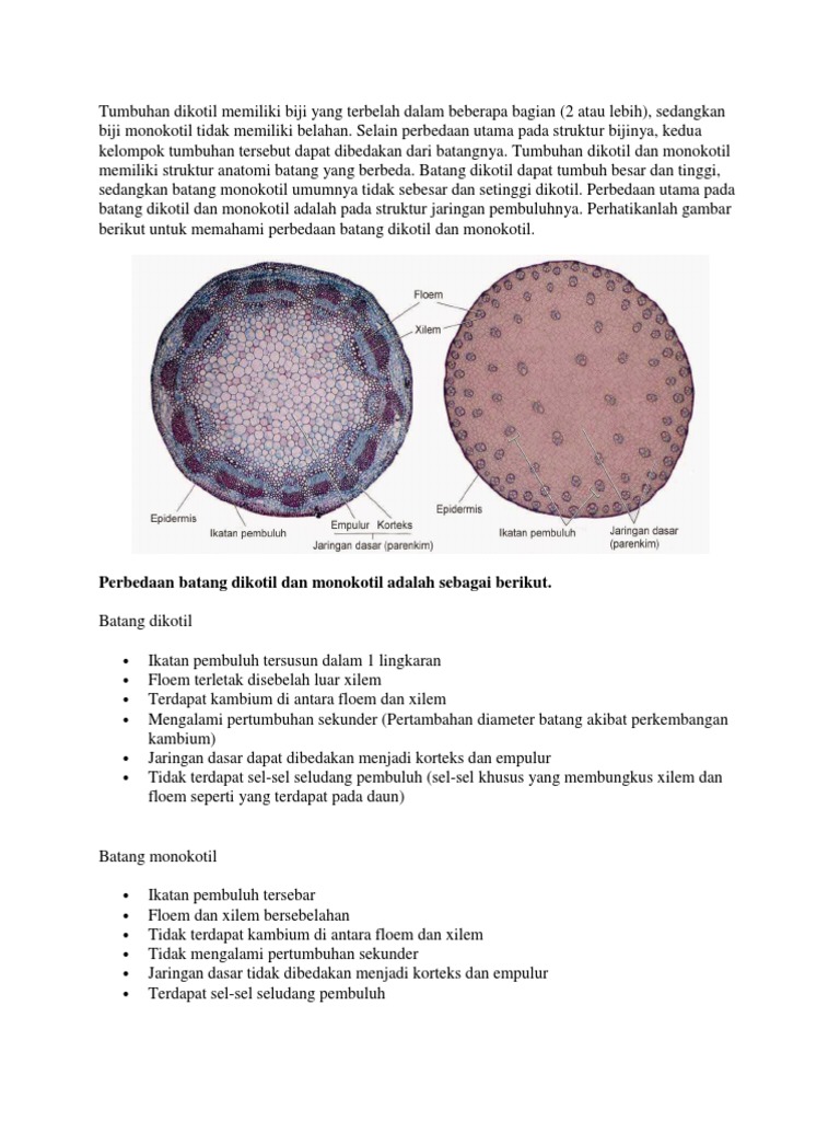 Struktur Batang Dikotil dan Monokotil - Persamaan dan Perbedaan - DosenBiologi.com