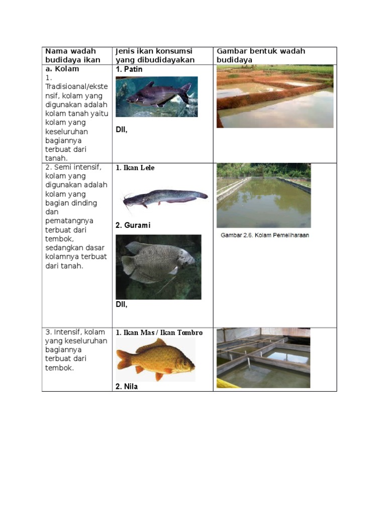 Nama wadah budi daya ikan | jenis ikan konsumsi yang di budidayakan | gambar bentuk wadah budidaya| - Brainly.co.id
