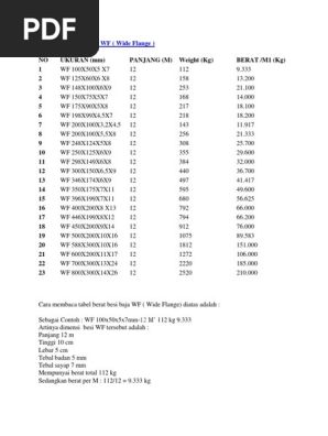 Tabel Berat Besi Baja WF