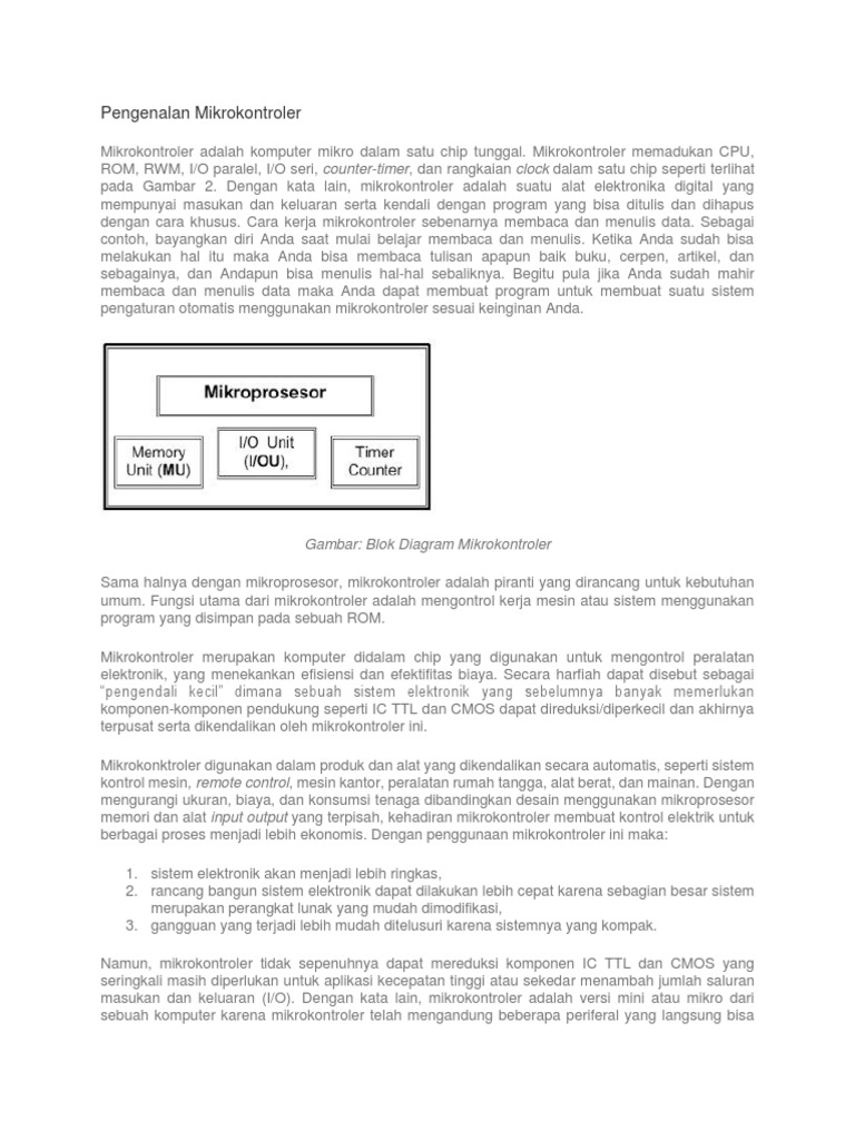 Blok diagram umum mikrokontroler adalah sebagai berikut: - PDF Free Download