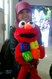 Gambar Boneka Lucu: Gambar Boneka Elmo Merah dan Senyum Manis Mbaknya