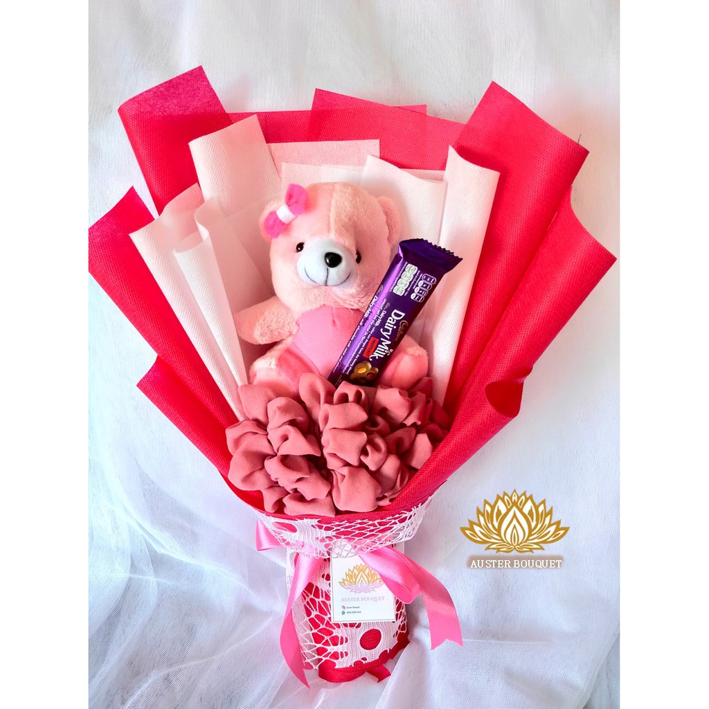 AB 280 Hand Bouquet Bucket Buket Jilbab Hijab Kerudung Boneka Coklat Cantik Murah Unik | Shopee Indonesia