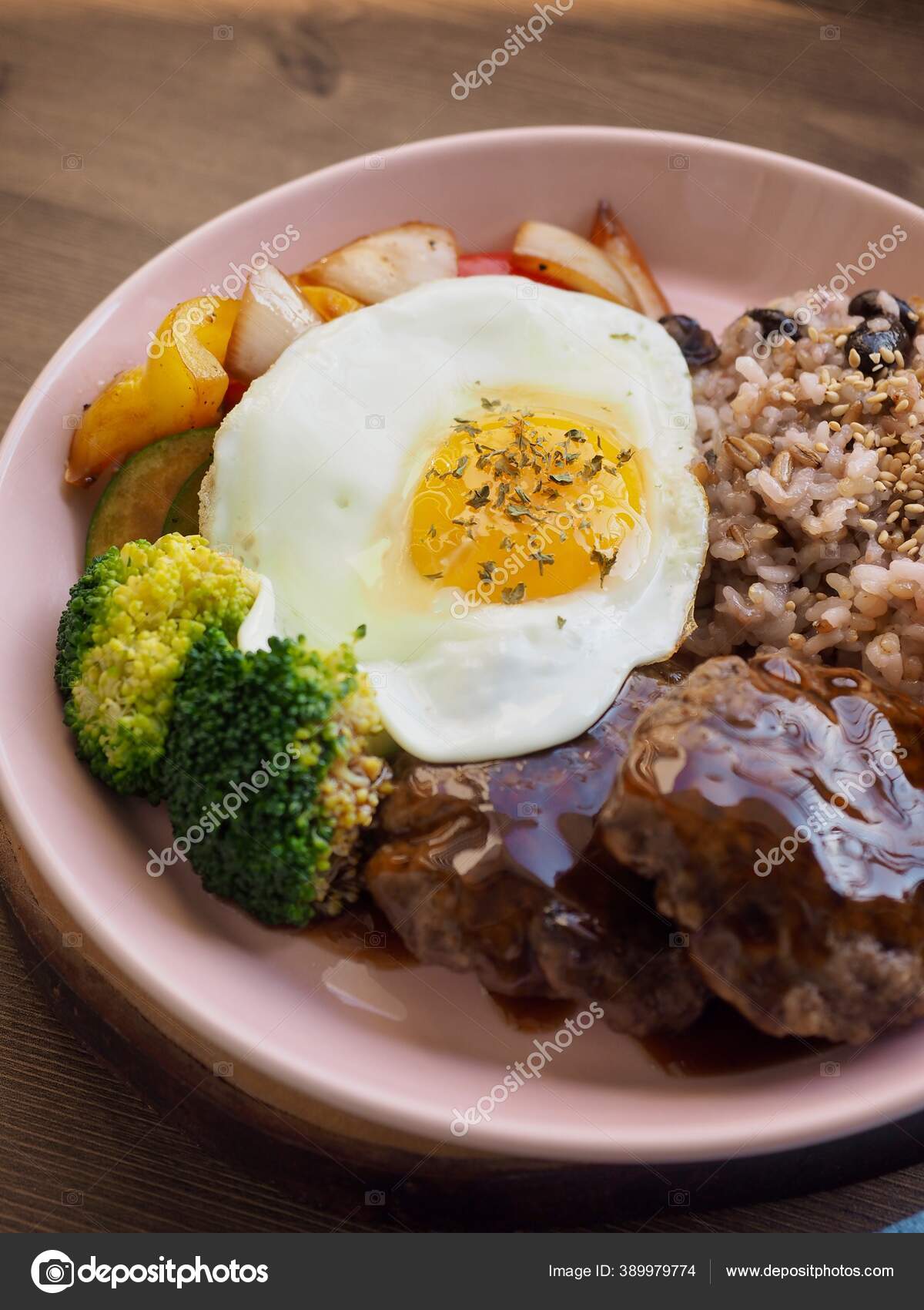 Daging Sapi Hamburger Steak Brokoli Sayuran Goreng — Stok Foto © hssbb79 #389979774