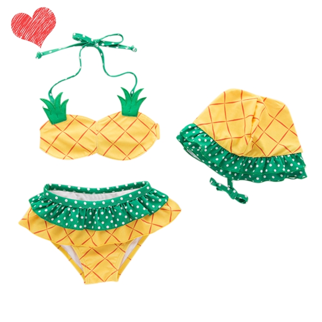 Set 3Pcs Bikini Two-Pieces dengan Bahan Breathable dan Gambar Kartun Buah Nanas | Shopee Indonesia