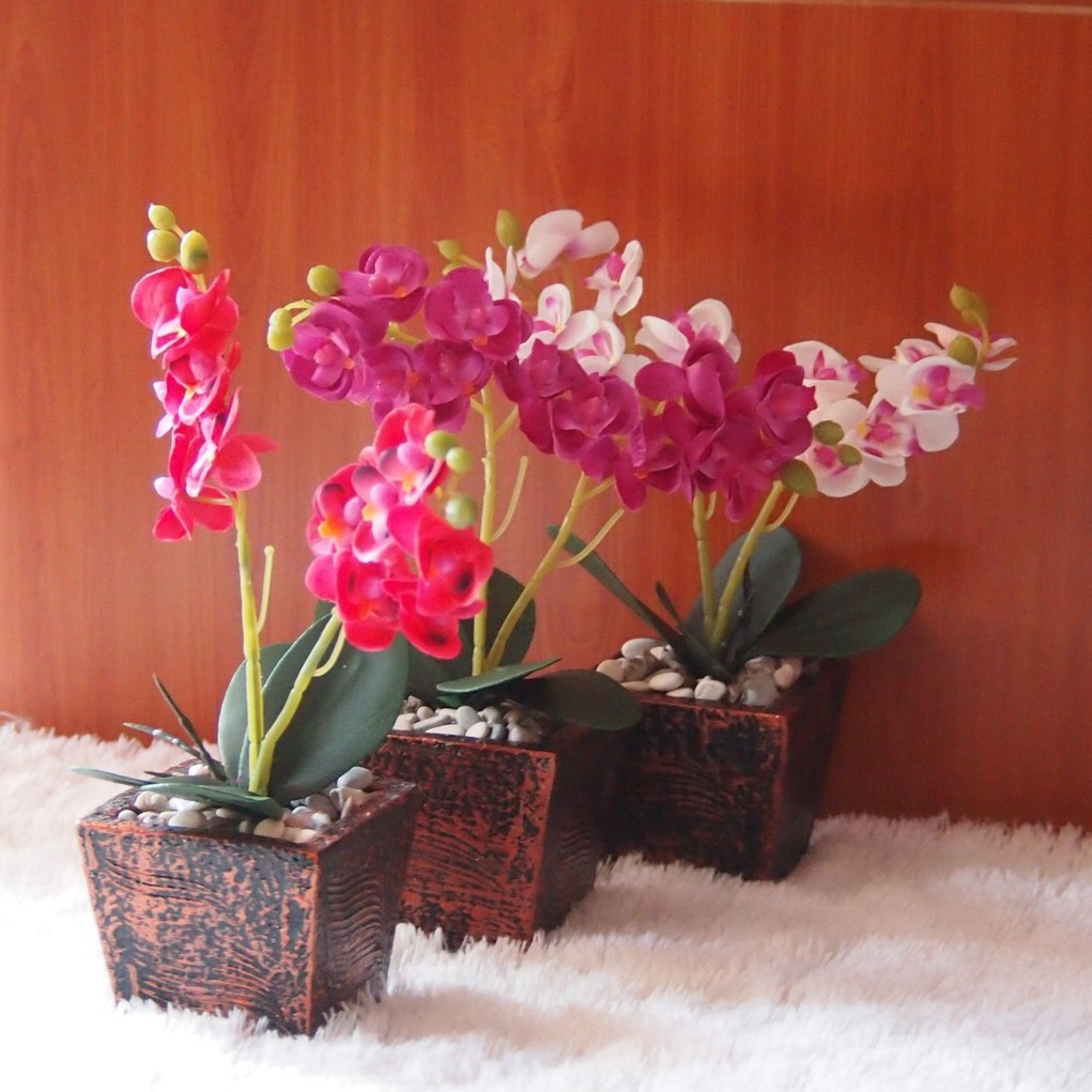 Vio ID - Bunga Artificial - Bunga Anggrek Rangkai dalam Pot Kayu 30 Cm | Shopee Indonesia