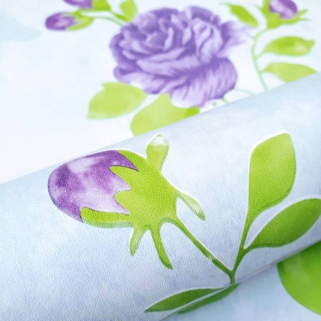Grosir murah wallpaper sticker dinding motif bunga warna ungu & daun warna hijau | Shopee Indonesia