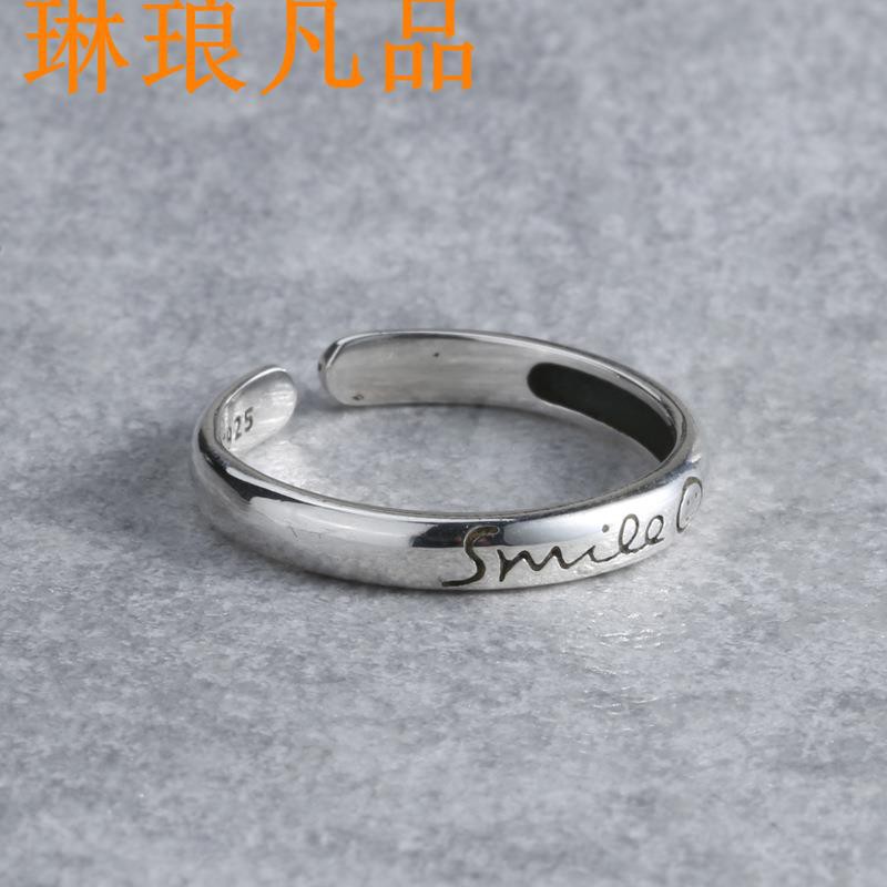 Ins Cincin Sterling Silver 925 Simple Motif Tulisan+gambar Wajah Tersenyum Untuk Wanita | Shopee Indonesia