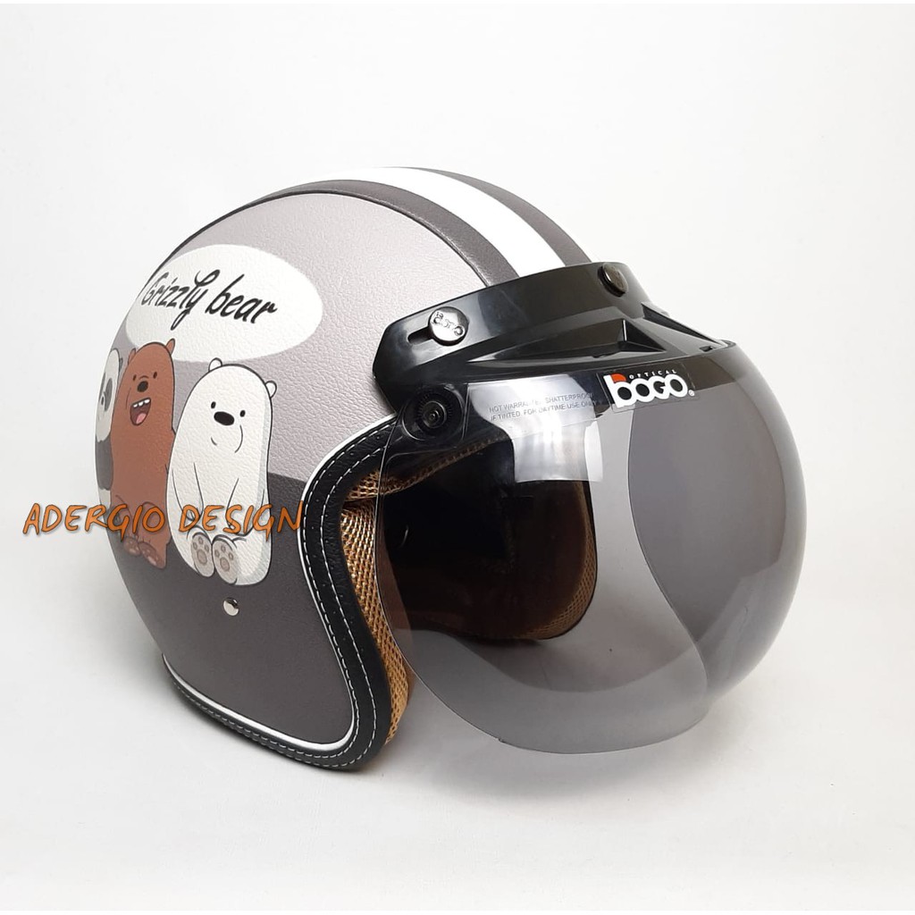 HELM BOGO Karakter Grizzly Bear Full Kulit Retro Klasik Kaca Bogo dan Osbe | Shopee Indonesia