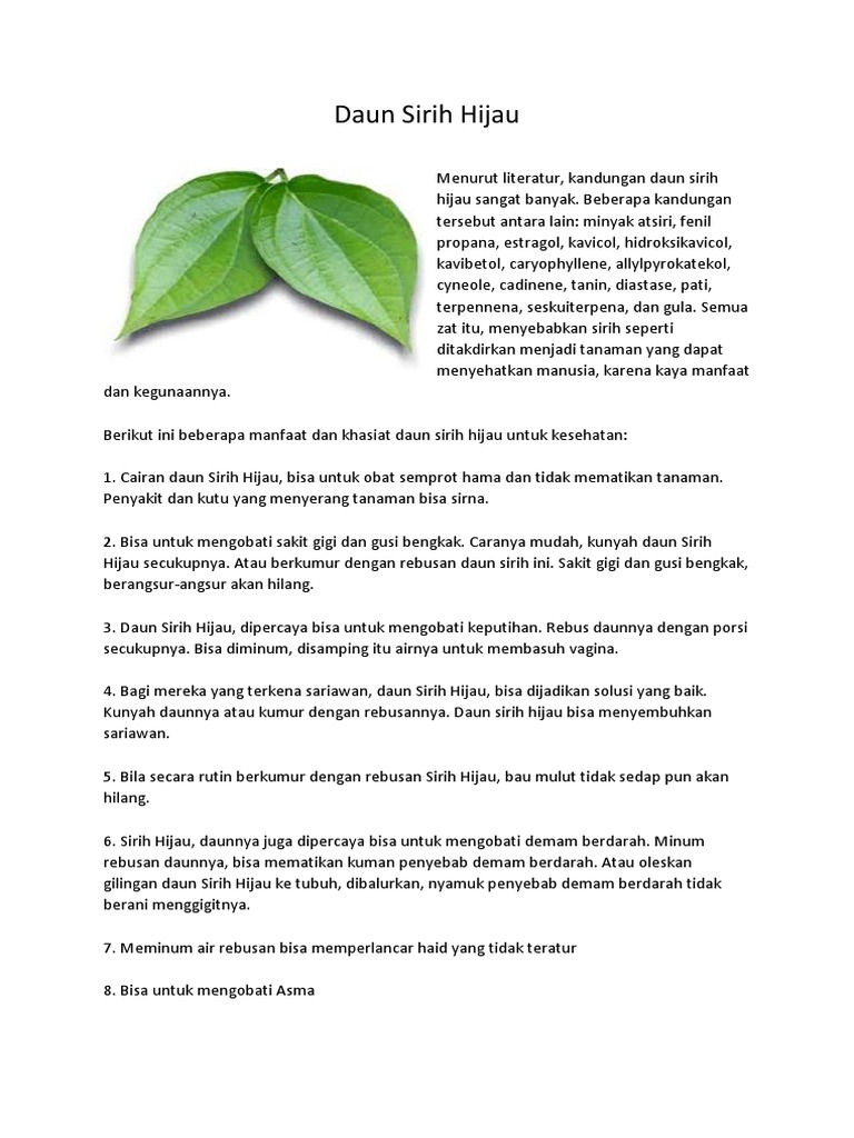 24 Khasiat & Manfaat Daun Sirih Hijau Si Obat Herbal Super Bagi Kesehatan Tubuh Manusia - SetiawanAP - SAP Garden