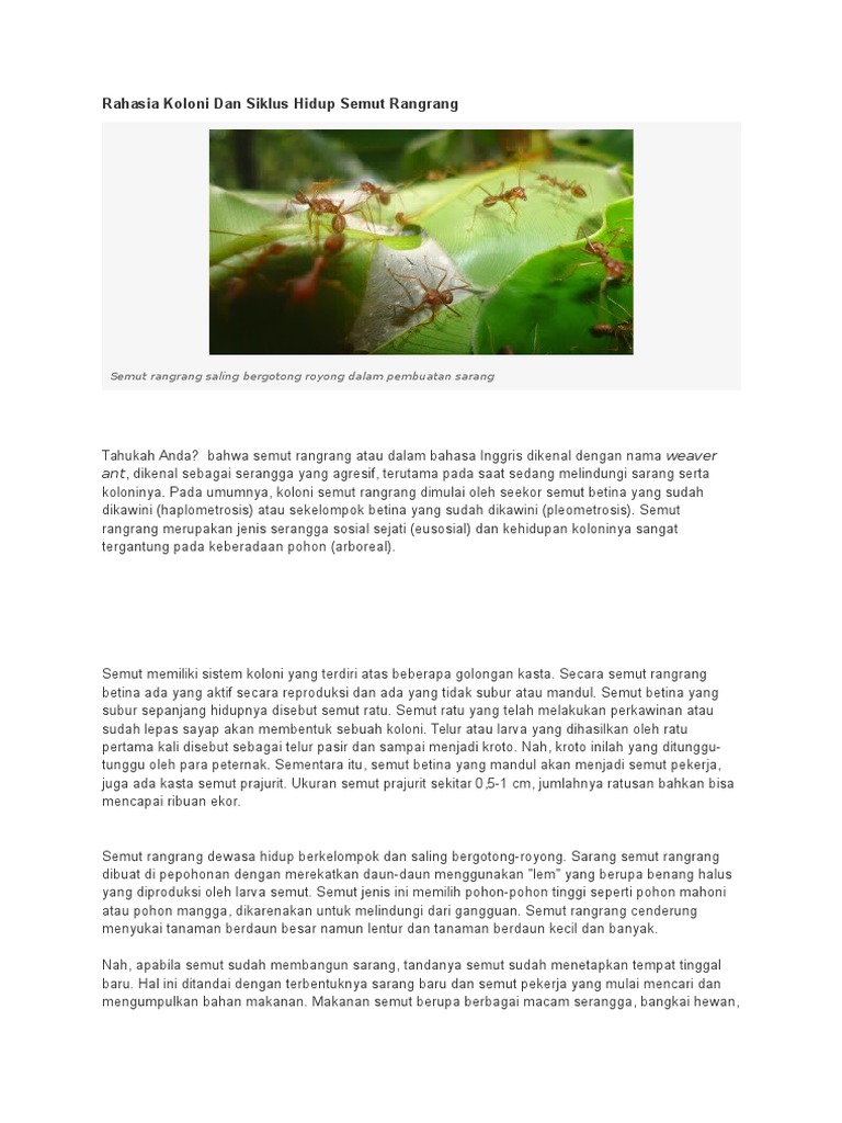 Rahasia Koloni Dan Siklus Hidup Semut Rangrang