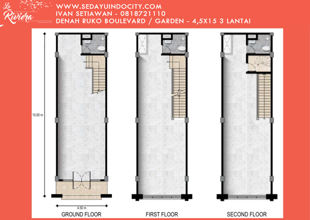 Denah ruko tipe standar 4.5x15 CitraRaya Cikupa “Little Ginza” | Ruko, Lantai, Desain