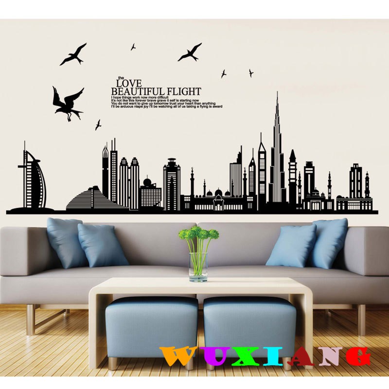 Eva Luvgreen Wallsticker Siluet Kota Hitam Wallpaper Stiker Dinding Kamar Hiasan Dinding XL JM7148 | Lazada Indonesia