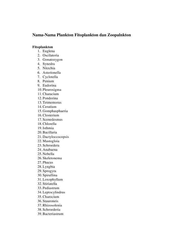 Nama Plankton Fitoplankton Dan Zoopalnkton