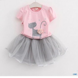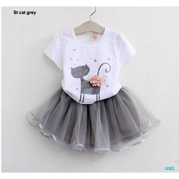 Baju Atasan Gambar Kartun Kucing Kaos T-Shirt + Rok Tutu Princess Untuk Anak Perempuan Set | Shopee Indonesia