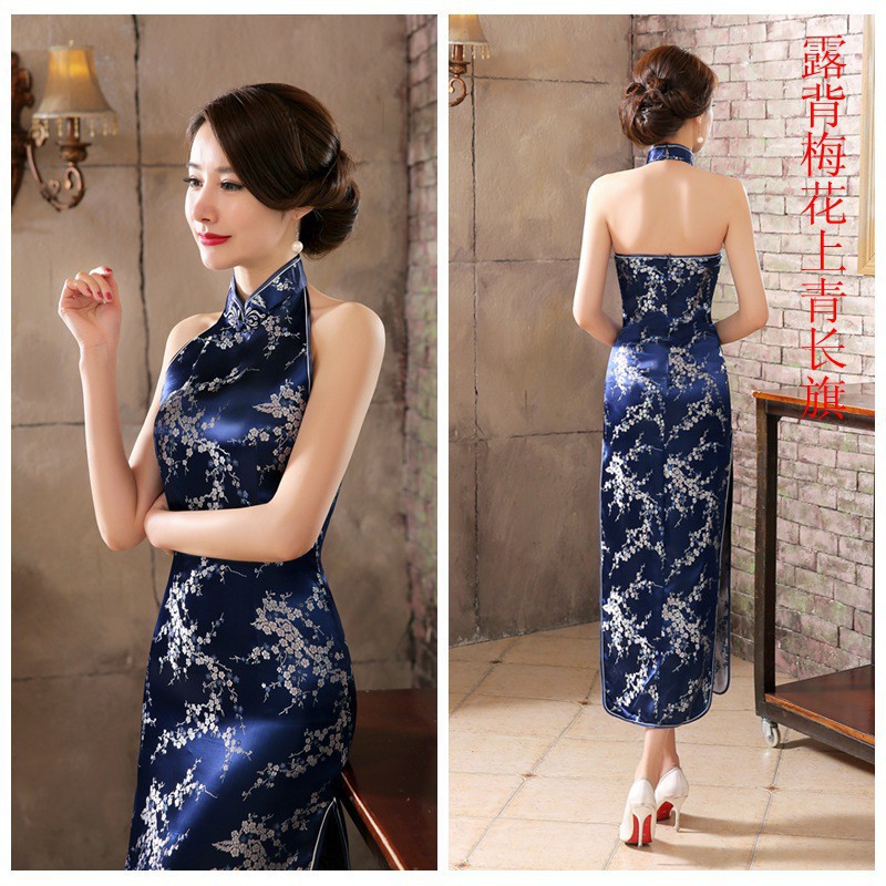 Supertree Cny Gaun Maxi Wanita Model Cheongsam Dengan Tali Halter Dan Gambar Motif Plum Bergaya Sexy | Shopee Indonesia