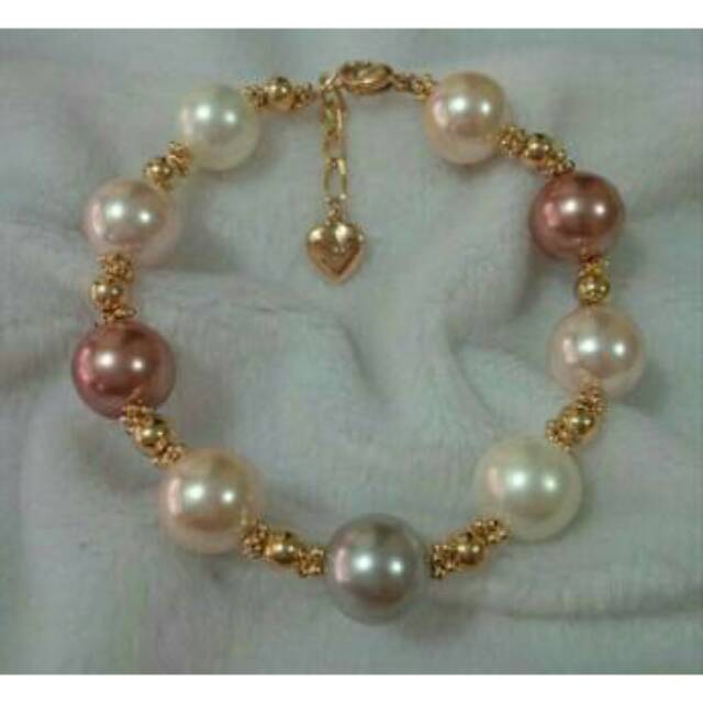 Gelang mutiara shell peach hitam titanium kombinasi lapis emas 24k | Shopee Indonesia
