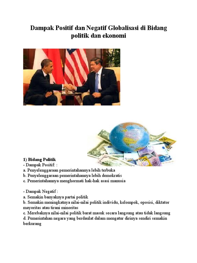 Dampak Positif Dan Negatif Globalisasi Di Bidang Politik Dan Ekonomi