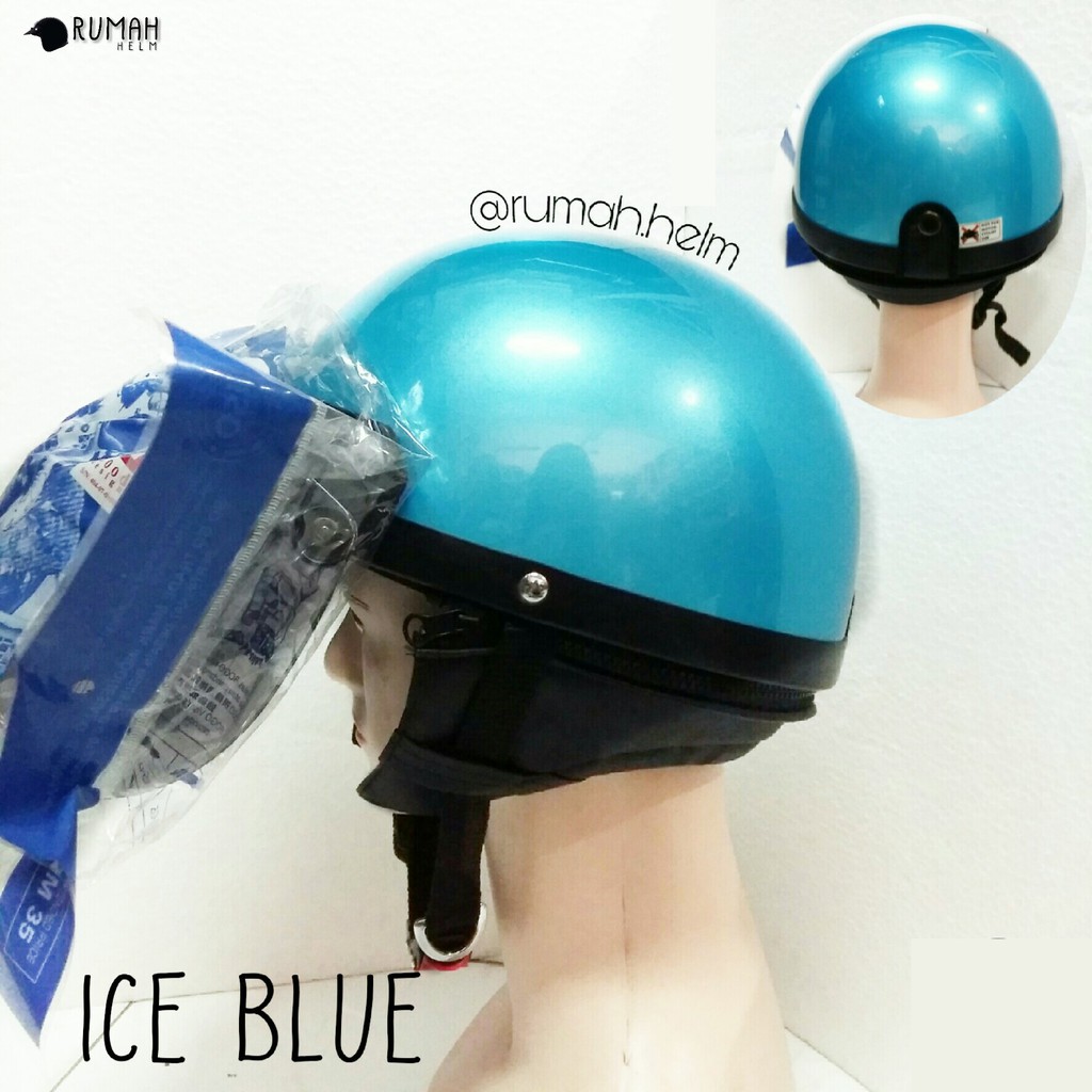 Helm Bogo JP Blue/Biru SNI/Vespa Retro Leather/Setengah Kulit | Shopee Indonesia