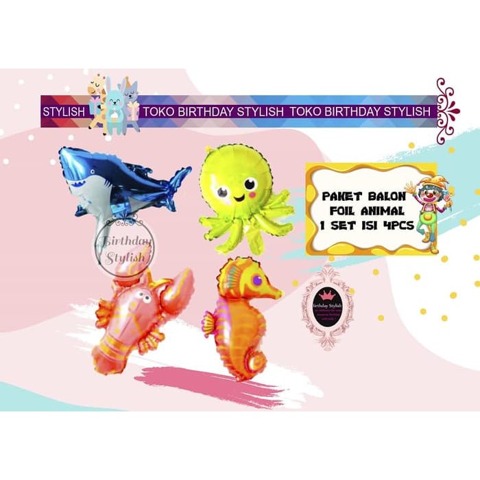 Set Meriah Balon Foil Ultah/ Balon Ikan Animal/ Hewan Laut Mini | Shopee Indonesia
