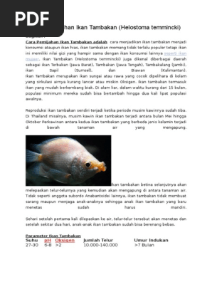 PDF) Keragaan Fenotipe Ikan Tambakan (Helostoma temminkii. Cuvier 1829) Hasil Domestikasi (Takhasi)