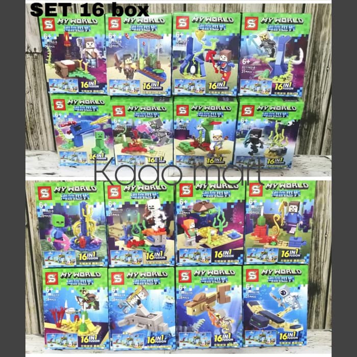NEW KT LEGO BRICK MINIFIGURE MINECRAFT MY WORLD SY 1162 SET 16 IN 1 | Shopee Indonesia