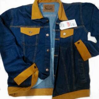 jaket jeans - jaket pria model terbaru jaket ariel kerah kantong lengan list hedlong warna gold | Shopee Indonesia