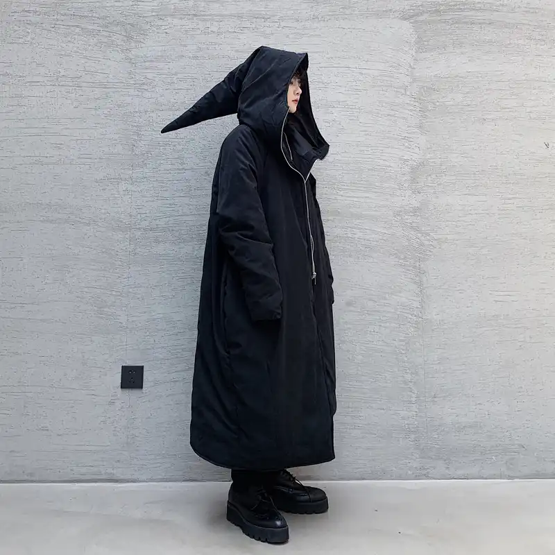 Pria Asimetri Hem Hitam Gelap Halloween Penyihir Tebal Panjang Jaket Parka Pria Wanita Jepang Kapas Empuk Hooded Mantel Pakaian Luar| | - AliExpress