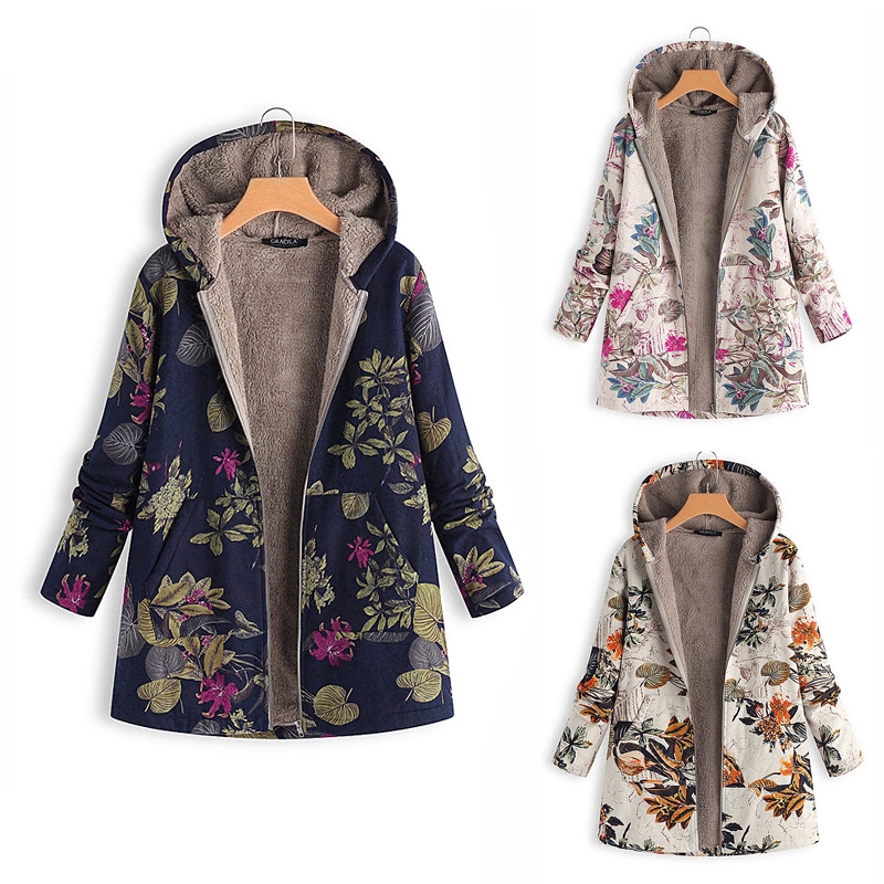 Jaket Parka Wanita dengan Hoodie dan Gambar Motif Floral Bergaya Vintage untuk Musim Dingin | Shopee Indonesia