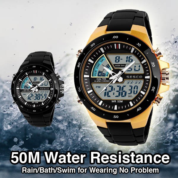 JAM TANGAN PRIA DIGITAL ANALOG SESCO 1016BK ANTI AIR 50M / JAM TANGAN BAGUS / JAM TANGAN TAHAN AIR | Shopee Indonesia