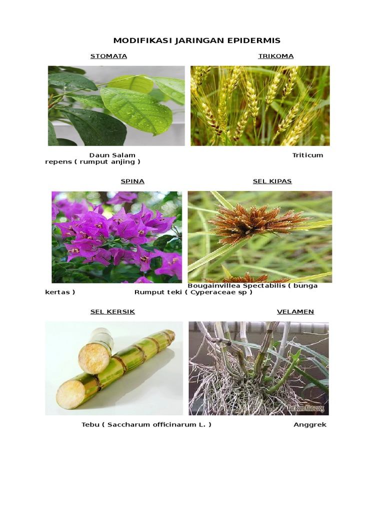 lengkapilah keterangan modifikasi jaringan epidermis dari gambar berikut! - Brainly.co.id