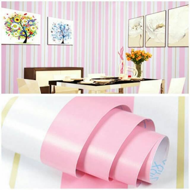 Wallpaper dinding murah ruang tamu kamar garis pink putih terlaris terbagus terindah elegan cantik | Shopee Indonesia