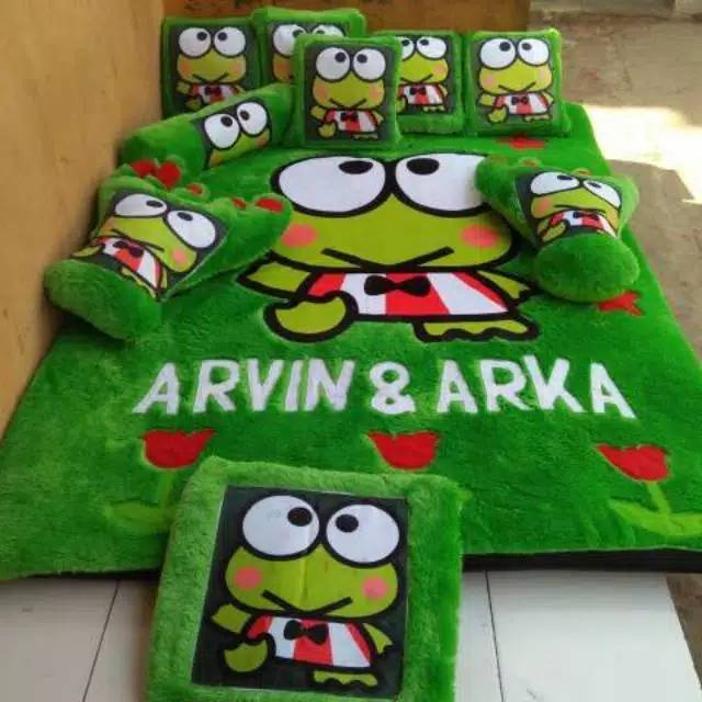 Tarry.Shop Karpet Bulu Rasfur Full Set Karpet Karakter Kasur Karakter Karpet Lant - Keropi | Shopee Indonesia