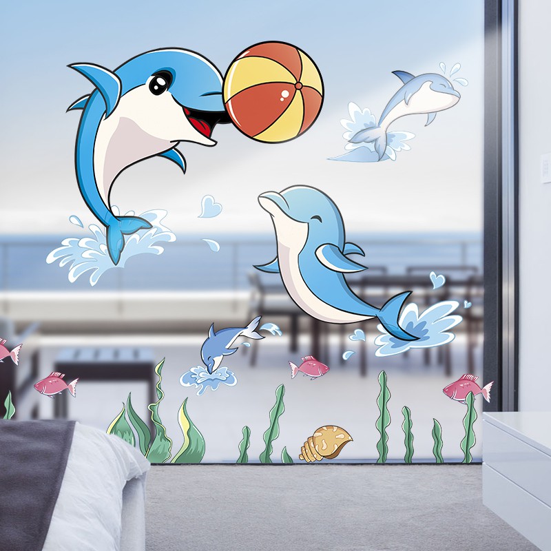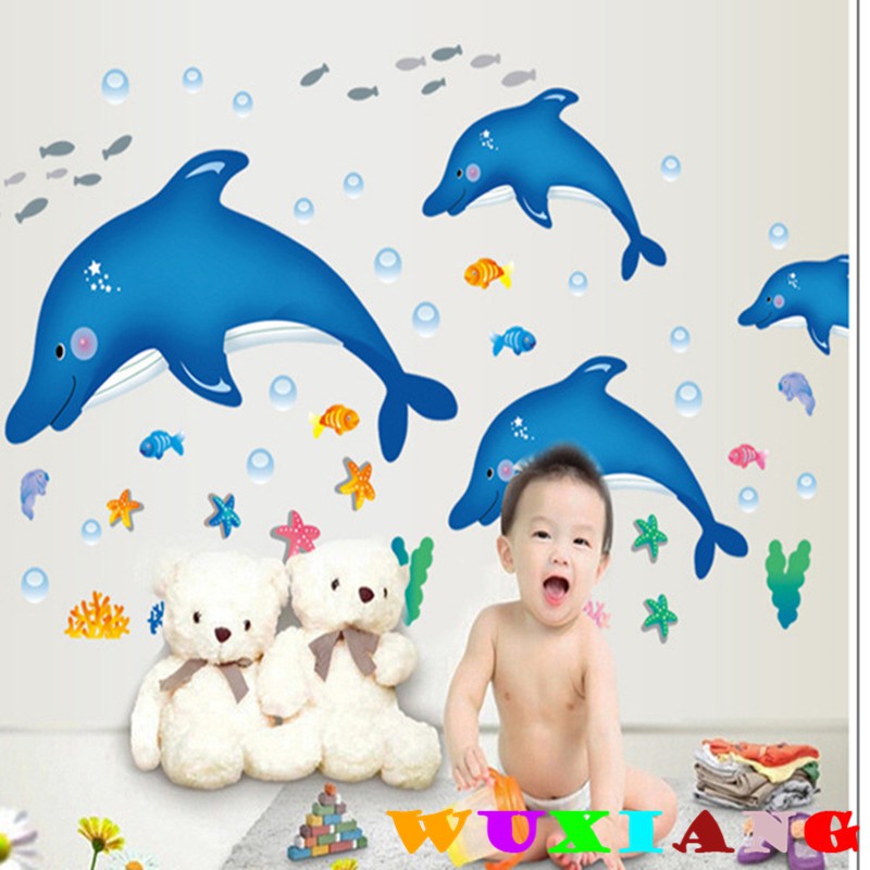 wuxiangDinding Stiker Kartun hewan Dolphin dinding stiker dekorasi rumah wallpaper | Shopee Indonesia