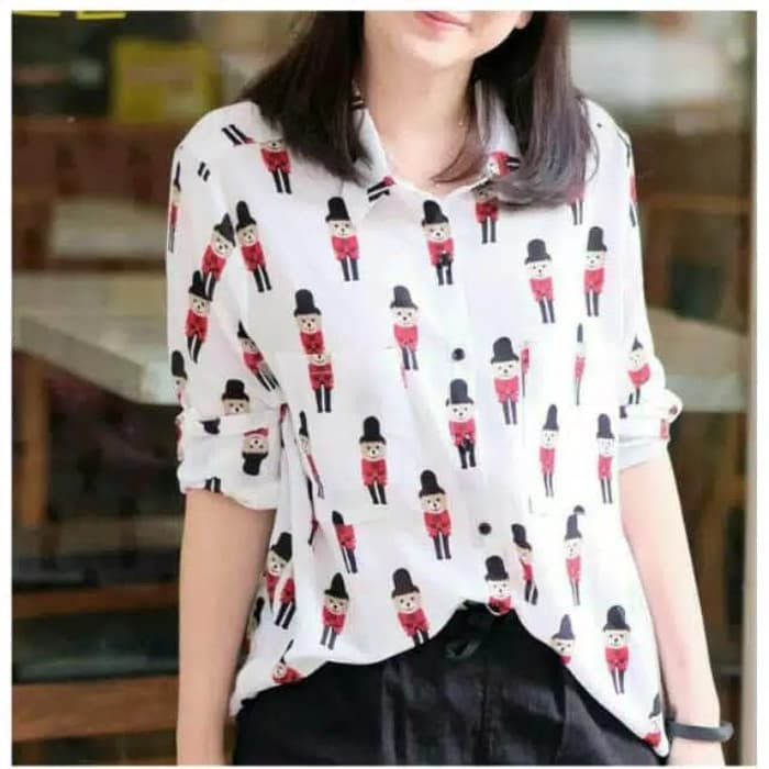 BAJU ATASAN WANITA KEMEJA LENGAN PANJANG KARTUN FASHION WANITA MUSLIM | Shopee Indonesia
