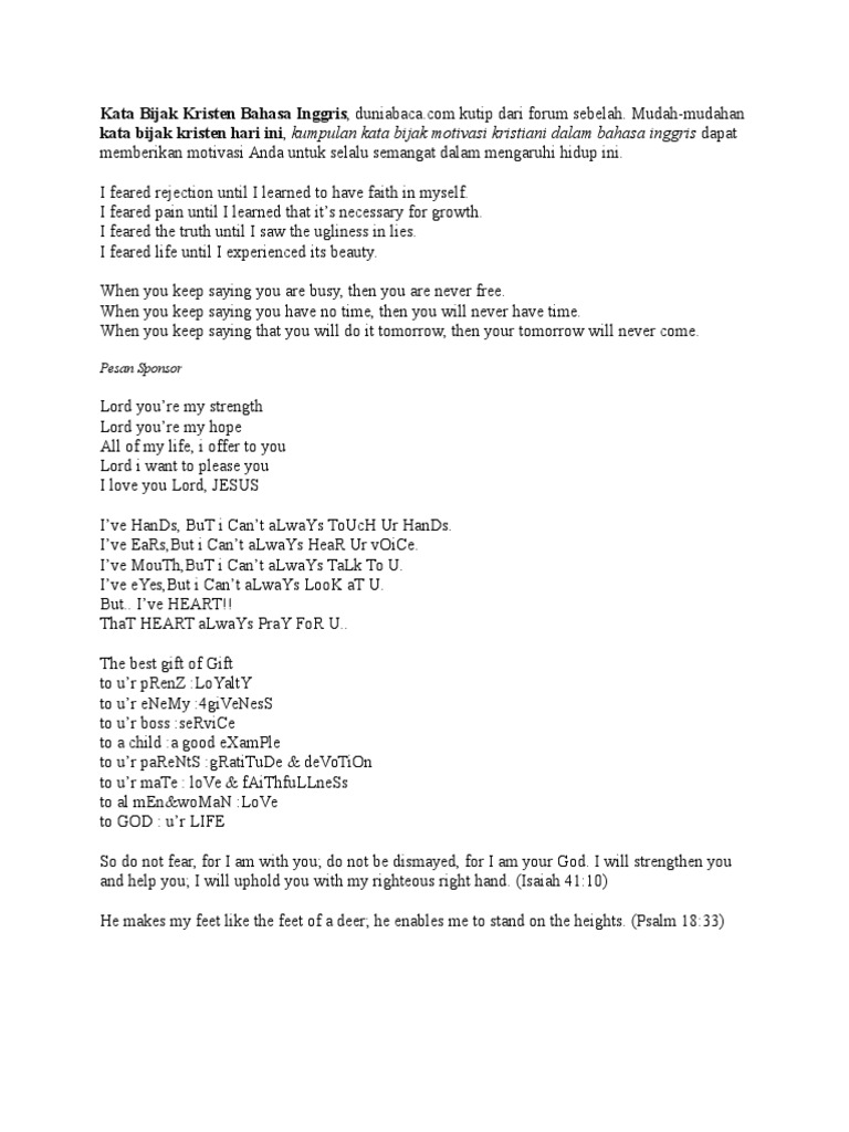Kata Kata Bijak Alkitab Dalam Bahasa Inggris Dan Artinya