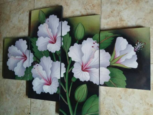lukisan panel bunga kembang sepatu putih di Lapak putri bali painting | Bukalapak