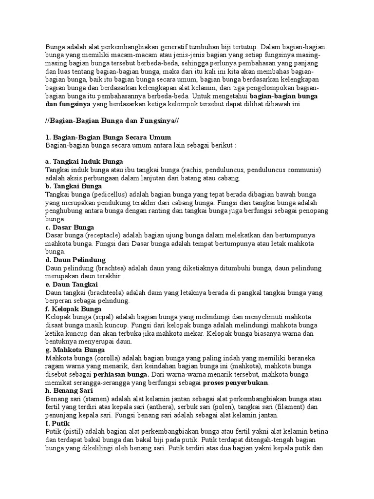 Bagian-Bagian Bunga Sebagai Alat Perkembangbiakan Generatif Tumbuhan | Tugas Sekolah