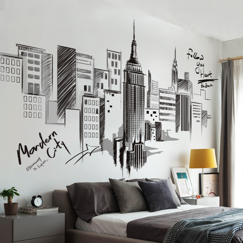 Creative living room bedroom wall decoration city sketch black and white art wall stickers home decoration|Wall Stickers| - AliExpress
