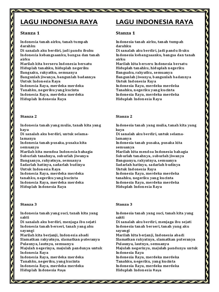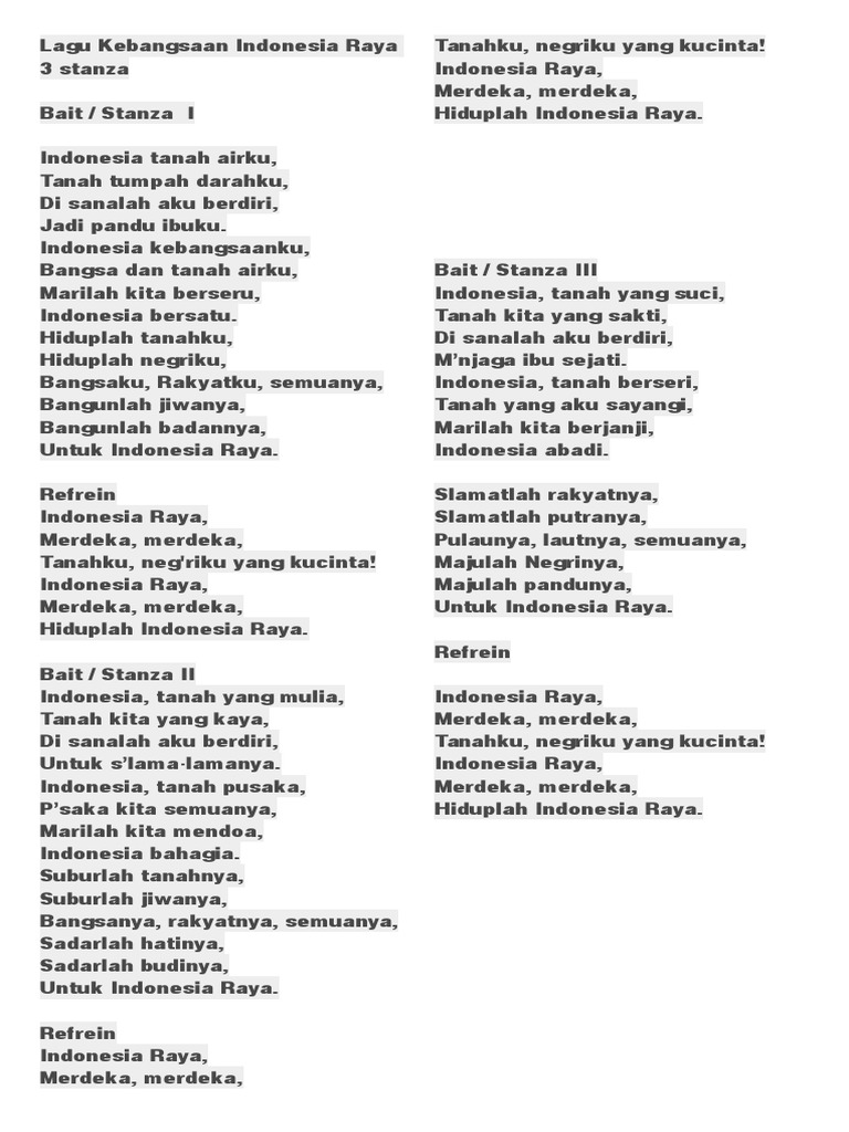 Lirik Indonesia Raya 3 Stanza .pdf & .doc - OkeCoy.Com | Hari Internasional Nasional